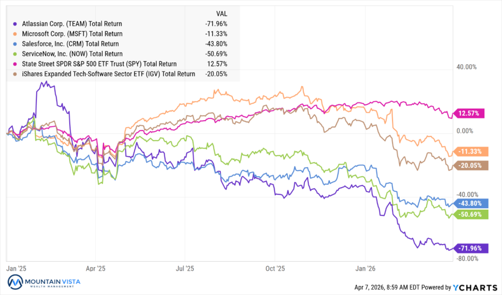 For the last decade, software companies have been a great investment. Low required capital investment, high margins and predictable growth produced high stock returns and high multiples. This narrative began to crack in 2025 for large enterprise software companies, such as Atlassian, Salesforce and ServiceNow. The culprit was artificial intelligence. The belief was that AI would make companies more efficient, requiring them to hire less people and therefore need to buy less software.